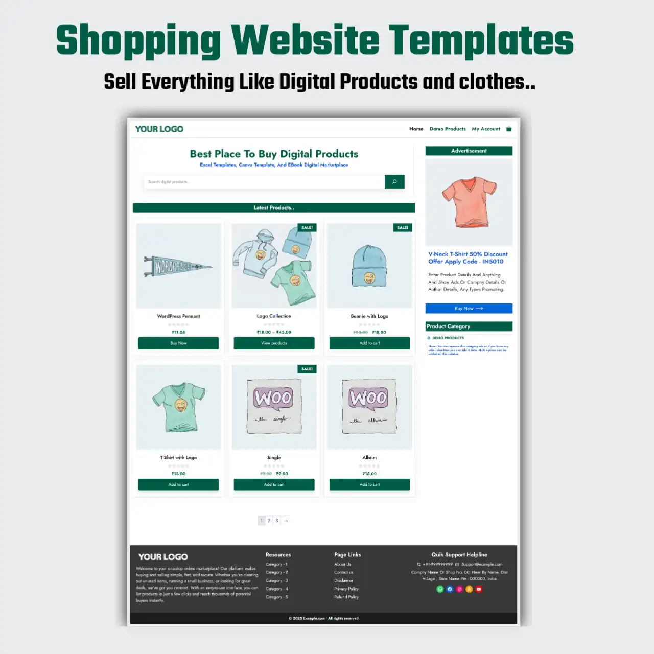 This Shopping Site Design is 100% Mobile and Desktop Responsive and 100% lightweight bug free Design Template. You Using This Shopping Site Readymade Template and Design. you can Very Easily make and Setup your a Professional Good Looking Digital Product Selling Platform Or Business on Woocommerce WordPress Site.